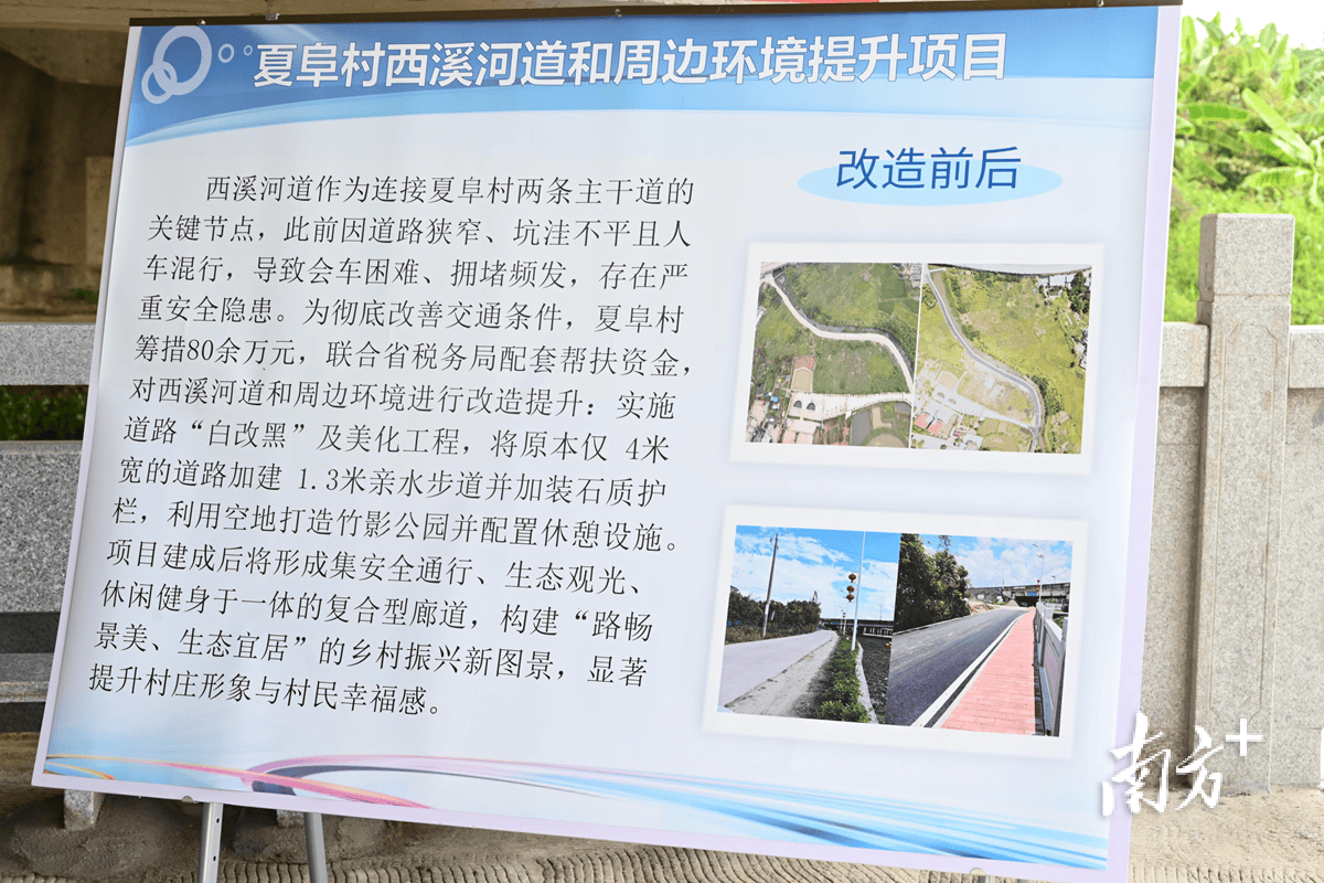 二十多公里外的横陂镇,“百千万工程”春风正悄然改变这座深厚文化历史的古镇,帮扶工作队在城乡基础设施、公共服务便利和文化融合发展等领域深入实施“强基工程”。省税务局为琴江河畔的夏阜中学、超群小学1191名中、小学生援建新教学设施,工人们各司其职,一派热火朝天的施工景象。超群村、崇文村、东山村沿途700余盏太阳能路灯焕然一新。新铺的沥青路打通了横陂村与崇文村的交通堵点。在帮扶单位广晟控股集团捐资192万元后,改变在乡村悄然诞生——十几户人家主动捐出沿路土地,用以拓宽道路,极大改善沿线村民的通行条件,为周边农田耕作、农产品运输及乡村旅游发展提供基础交通保障。“现在出行不用绕远路了。”当地村民交口称赞。
